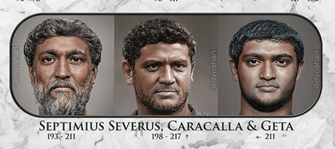The African emperor Septimus Severus invaded Scotland in 208 AD. His Syrian wife and two sons Caracalla and Geta came with him.